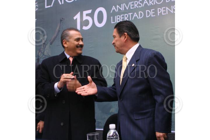 MÉXICO, D.F., 18FEBRERO2010.- La senadora María Rojo del Partido de la Revolución Democrática (PRD) conversa con José Woldenberg Karakowsky, catedrático de la Universidad Nacional Autónoma de México (UNAM) durante el foro "Laicidad y Democracia" dentro del Senado de la República. FOTO: CUARTOSCURO.COM