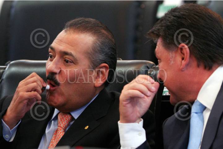 MÉXICO, D.F., 18FEBRERO2010.- Los senadores Renán Cleominio Zoreda Novelo, platicó con Alfredo Rodríguez y Pacheco, en la sesión en la Cámara Alta. FOTO: MOISÉS PABLO/CUARTOSCURO.COM