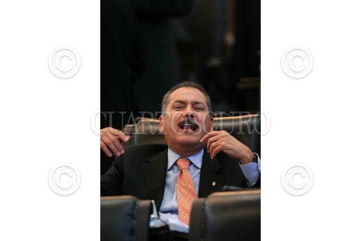 MÉXICO, D.F., 18FEBRERO2010.- Los senadores Renán Cleominio Zoreda Novelo, platicó con Alfredo Rodríguez y Pacheco, en la sesión en la Cámara Alta. FOTO: MOISÉS PABLO/CUARTOSCURO.COM