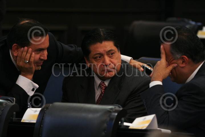 MÉXICO, D.F., 18FEBRERO2010.- Los senadores Renán Cleominio Zoreda Novelo, platicó con Alfredo Rodríguez y Pacheco, en la sesión en la Cámara Alta. FOTO: MOISÉS PABLO/CUARTOSCURO.COM