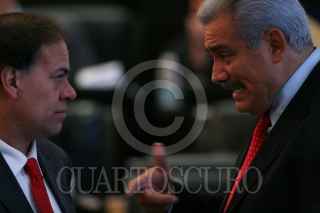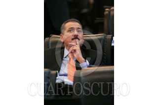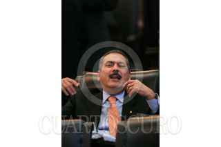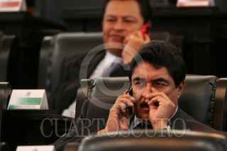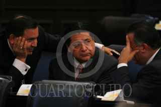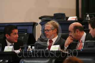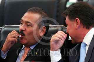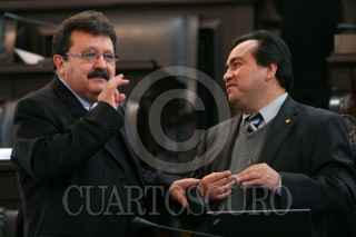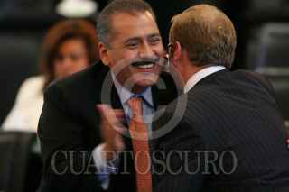 MÉXICO, D.F., 18FEBRERO2010.- Los senadores Renán Cleominio Zoreda Novelo, platicó con Alfredo Rodríguez y Pacheco, en la sesión en la Cámara Alta. FOTO: MOISÉS PABLO/CUARTOSCURO.COM