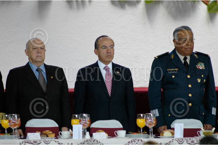 MÉXICO, D.F., 19FEBRERO2010.- El diputado Francisco Salazar, vicepresidente de la mesa directiva de la Cámara de Diputados, Fernando Gomez Mont, secretario de Gobernación y Genero Garcia Luna, secretario de Seguridad Pública Federal durante el desayuno por motivo del Día del Ejercito que se realizo en el Heroico Colegio Militar. FOTO: RODOLFO ANGULO/CUARTOSCURO.COM