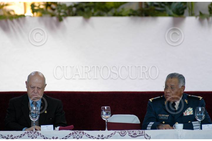 MÉXICO, D.F., 19FEBRERO2010.- El diputado Francisco Salazar, vicepresidente de la mesa directiva de la Cámara de Diputados, Fernando Gomez Mont, secretario de Gobernación y Genero Garcia Luna, secretario de Seguridad Pública Federal durante el desayuno por motivo del Día del Ejercito que se realizo en el Heroico Colegio Militar. FOTO: RODOLFO ANGULO/CUARTOSCURO.COM