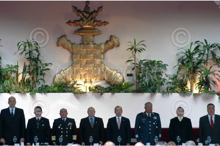 MÉXICO, D.F., 19FEBRERO2010.- El diputado Francisco Salazar, vicepresidente de la mesa directiva de la Cámara de Diputados, Fernando Gomez Mont, secretario de Gobernación y Genero Garcia Luna, secretario de Seguridad Pública Federal durante el desayuno por motivo del Día del Ejercito que se realizo en el Heroico Colegio Militar. FOTO: RODOLFO ANGULO/CUARTOSCURO.COM