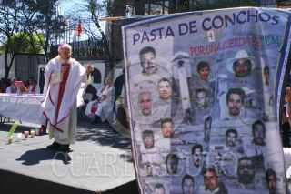 MÉXICO, D.F., 19FEBRERO2010.- La señora María Trinidad Cantú Cortez, madre del minero muerto Raúl Villasan Cantú, en el colapso de la mina de carbón Pasta de Conchos, exigió justicia a este crimen que permanece sin castigo, durante la misa del cuarto aniversario de esta tragedia. Familiares, simpatizantes y los obispos Raúl Vera y Samúel Ruíz, exigieron se rescaten los 63 cuerpos que aún permanecen sepultados, así como la indemnización a sus deudos y el castigo a dueños del Grupo México propietarios de este yacimiento minero. FOTO: MOISÉS PABLO/CUARTOSCURO.COM