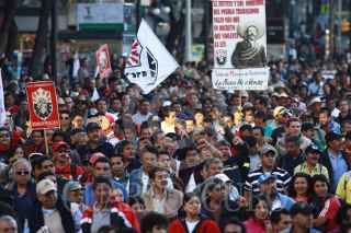 MÉXICO, D.F., 19FEBRERO2010.- Familiares de los mineros fallecidos en Pasta de conchos realizaron una marcha acompañados por miembros del SME, la marcha partió del monumento a la recolución y terminó en el Zocalo. FOTO: SÁSHENKA GUTIERREZ/CUARTOSCURO.COM