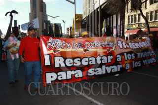 MÉXICO, D.F., 19FEBRERO2010.- Familiares de los mineros fallecidos en Pasta de conchos realizaron una marcha acompañados por miembros del SME, la marcha partió del monumento a la recolución y terminó en el Zocalo. FOTO: SÁSHENKA GUTIERREZ/CUARTOSCURO.COM