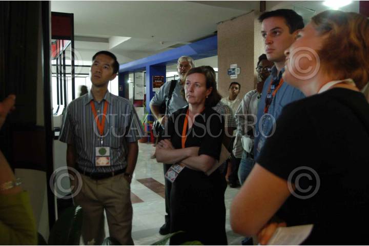 Periodistas que cubren la quinta conferencia de la OMC, estan atentos a los diversas conferencias que se transmiten por circuito cerrado. FOTO: German Romero/CUARTOSCURO.COM