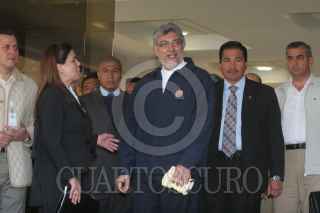 MÉXICO D.F. 21FEBRERO2010.- Fernando Lugo, Presidente de Paraguay, recibió una playera del club America y autografiada por Salvador Cabañas, la cual le firmo con quien platicó por más de 10 minutos, esto durante la vista en el hospital donde se encuentra internado después del ataque sufrido en el Bar Bar. FOTO: SAMANTHA QUIROZ/CUARTOSCURO.COM
