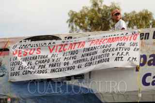NEZAHUALCOYÓTL, ESTADO DE MÉXICO, 21FEBRERO2010.- Fue encontrada una narcomanta, colocada en un puente peatonal sobre la avenida Central a la altura del Metro Impulsora perímetro del Municipio de Nezahualcoyotl. Textualmente decía: !Impunidad total en Sinaloa¡ Jesus Vizcatta "precandidato" a la gobernatura del estado financiada por sus socios El Chapo y El Mayo ningún operativo en este estado por parte de Marina, Ejército y P.F.P. Todos comprados incluyendo el gobernador Att. F.M. FOTO: LUIS CARBAYO/CUARTOSCURO.COM
