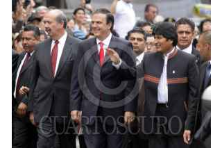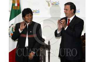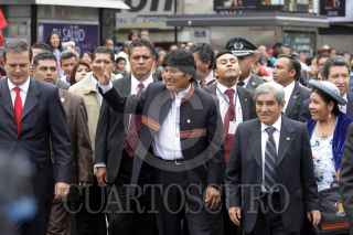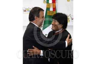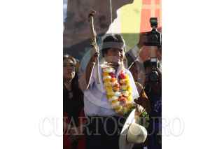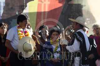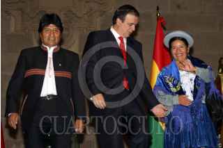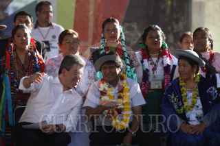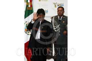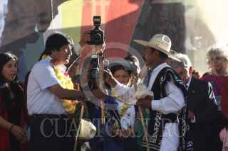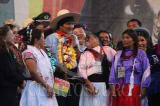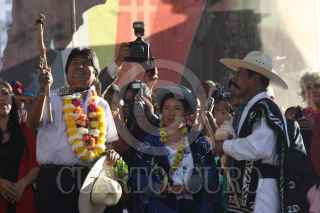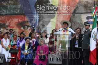 MÉXICO, D.F., 21FEBRERO2010.- El presidente de Bolivia Evo Morales visitó la delegación Coyoacan donde se realizo una ceremonia tradicional de saludo a los cuatro rumbos le fué entregado el bastón de mando en el Jardín Hidalgo FOTO: SÁSHENKA GUTIÉRREZ/CUARTOSCURO.COM