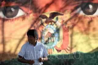 MÉXICO, D.F., 21FEBRERO2010.- El presidente de Bolivia Evo Morales visitó la delegación Coyoacan donde se realizo una ceremonia tradicional de saludo a los cuatro rumbos le fué entregado el bastón de mando en el Jardín Hidalgo FOTO: SÁSHENKA GUTIÉRREZ/CUARTOSCURO.COM