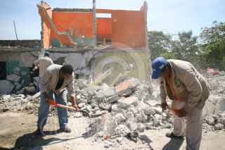 VILLAHERMOSA, TABASCO, 22FEBRERO2010.- Hasta el día de hoy van alrededor de 23 casas demolidas, lo que representa un seis por ciento de un total de 371 domicilios que tienen que destruidas al encontrase en zona de peligro por constante peligro de inundación en la colonia Casa Blanca. FOTO: MARCO POLO GUZMÁN HERNÁNDEZ/CUARTOSCURO.COM