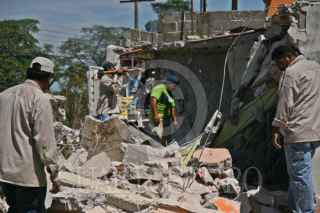 VILLAHERMOSA, TABASCO, 22FEBRERO2010.- Hasta el día de hoy van alrededor de 23 casas demolidas, lo que representa un seis por ciento de un total de 371 domicilios que tienen que destruidas al encontrase en zona de peligro por constante peligro de inundación en la colonia Casa Blanca. FOTO: MARCO POLO GUZMÁN HERNÁNDEZ/CUARTOSCURO.COM