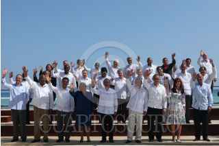 PLAYA DEL CARMEN, QUINTANA ROO, 22FEBRERO2010.- Los jefes de estado de América Latina y el Caribe se toman la foto oficial de la XXI Cumbre de Río. FOTO: ALFREDO GUERRERO/CUARTOSCURO.COM