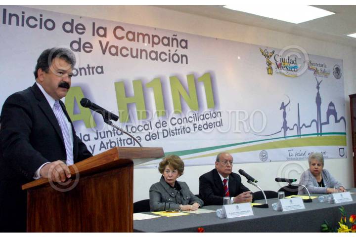 MÉXICO, D.F., 22FEBRERO2010.- Armando Ahued Ortega, Secretario de Salud, en la junta de Conciliación y arbitraje del Distrito Federal, durante el inicio de la campaña de vacunación entre el personal de esta institucion. FOTO: CUARTOSCURO.COM