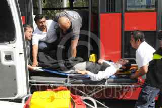MÉXICO, D.F., 22FEBRERO2010.- Cinco personas, resultaron con diversas lesiones al impactarse el Metrobus en el que viajaban, contra un auto Focus con placas 488-VHY sobre la avenida Insurgentes al cruce con Paseo de la Reforma en la colonia Juárez, por lo que arribaron varias unidades de emergencia para la atención de los heridos. FOTO: LUIS CARBAYO/CUARTOSCURO.COM