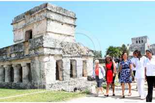 TULUM QUINTANA ROO 22 FEBRERO 2010.- Margarita Zavala Esposa de Felipe Calderon Presidente de México, recorrio la zona Arqueologica de Tulum. FOTO: FRANCISCO SANTOS/CUARTOSCURO.COM