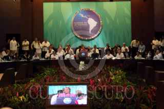 SOLIDARIDAD, QUINTANA ROO, 23FEBRERO2010.- Felipe Calderón Hinojosa, Presidente de México, encabezó la clausura de la "Cumbre de la Unidad de América Latina y El Caribe". FOTO: AMARANTA PRIETO/CUARTOSCURO.COM