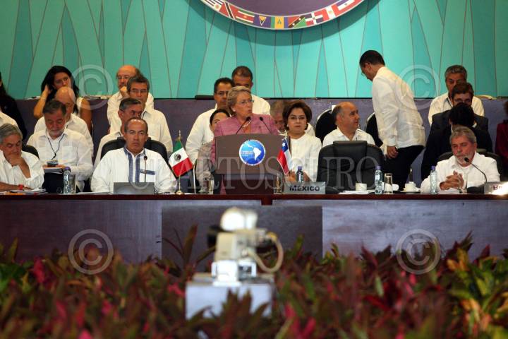 SOLIDARIDAD, QUINTANA ROO, 23FEBRERO2010.- Felipe Calderón Hinojosa, Presidente de México, encabezó la clausura de la "Cumbre de la Unidad de América Latina y El Caribe". FOTO: AMARANTA PRIETO/CUARTOSCURO.COM