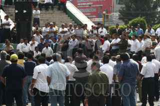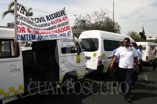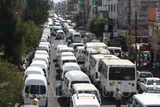 CIUDAD NEZAHUALCOYOTL, ESTADO DE MÉXICO., 24FEBRERO2010.- Centenares de transportistas de la ruta 47 bloquearon la avenida Chimalhuacan y los accesos al palacio municipal exigiendo que el presidente municipal, Edgar Navarro deje de apoyara a organizaciones de transportistas que operan sin permisos. FOTO: SAÚL LÓPEZ/CUARTOSCURO.COM