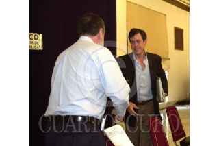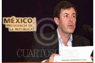 Agustin Gutierrez Canet y Enrique Berruga Filloy, subsecretario de Relaciones Exteriores al término de la conferencia de prensa en el salón Venustiano Carranza en Los Pinos, donde se anunciron las proximas actividades de la gira del presidente Vicente Fox por Nueva York y su visita a George w. Bush, presidente de Estados Unidos. FOTO: Sandra Perdomo/CUARTOSCURO.COM