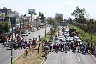 NEZAHUALCÓYOTL, ESTADO DE MÉXICO, 25FEBRERO2010.- Vecinos de la colonia Impulsora, bloquearon avenida Central por los cheques que recibieron sin fondos por parte del Gobernador del Estado de México, Enrique Peña Nieto. Al igual, fueron apoyados por familias que no fueron censadas por los daños causados a sus viviendas durante el desbordamiento del canal Río de Los Remedios. FOTO: LUIS CARBAYO/CUARTOSCURO.COM