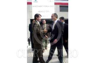 Fernando Canales Clariónd, Secretario de Economía, y Jose Luis Romero Hicks, Director Nacional de BANCOMEXT, a su salida del investment forum 2003 organizado por el BANCOMEXT. FOTO: Iván Stephens/CUARTOSCURO.COM