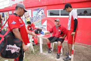 SAN ANDRÉS TUXTLA, VERACRUZ, 26FEBRERO2010.- Manuel Cazarin, manager de los Petroleros de Minatitlán da instrucciones y consejos a los peloteros. FOTO: MARCO POLO GUZMÁN HERNÁNDEZ/CUARTOSCURO.COM