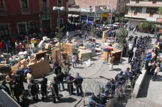 MÉXICO, D.F., 26FEBRERO2010.- Nueve personas resultan lesionadas por golpes, al ser desalojadas por granaderos que apoyaron al Ministerio Publico con orden de desalojo de un inmueble ubicado en calles de Misioneros entre Roldan y Topacio colonia Centro. FOTO: LUIS CARBAYO/CUARTOSCURO.COM