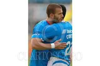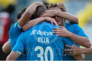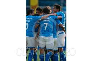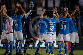 MÉXICO, D.F., 27FEBRERO2010.- Jugadores de la maquina celeste del Cruz Azul agradecen a su afición al termino del partido en contra de los zorros del Atlas; partido que ganó la maquina celeste 3 goles por 1 en el estadio Azul de la jornada 8 del torneo Bicentenario del fútbol mexicano. FOTO: RODOLFO ANGULO/CUARTOSCURO.COM