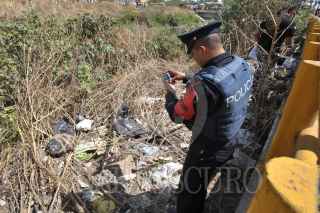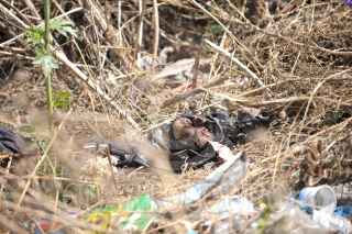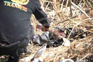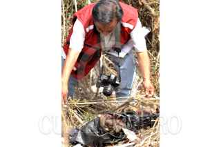 MÉXICO, D.F., 28FEBRERO2010.- Una cabeza fue descubierta cuando era comida por perros. Dicha testa se encontraba en una bolsa en color negro junto con cinco bolsas más que contenían los restos humanos lo que ocasiono fuerte movilización policíaca para checar la zona. Peritos Mexiquenses acudieron para tomar conocimiento de los hechos y realizar el levantamiento de dichas bolsas. Versión extraoficial indicaron que fueron dos los cuerpos destazados. FOTO: LUIS CARBAYO/CUARTOSCURO.COM