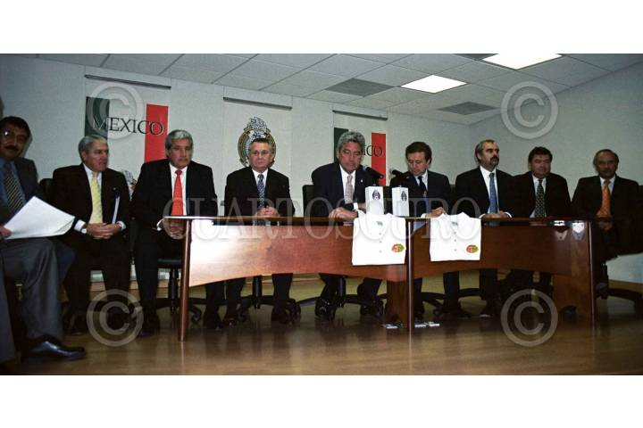 El cómite directivo de la FEMEXFUT, encabezado por su presidente Alberto de la Torre, dieron a conocer la suspencion de 2 meses y 100 mil pesos para el presidente del Toluca, Rafael Lebrija. FOTO: Ricardo Hernández/CUARTOSCURO.COM
