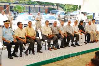 VILLAHERMOSA, TABASCO, 01MARZO2010.- Andrés Granier Melo, gobernador del estado acudió al Colegio de Policías para realizar la entrega de vehículos y motocicletas para el desempeño de un mejor pratullaje de los elementos de seguridad pública y Policía Estatal de Caminos. Dijo de manera tajante "Ni improvisaciones, ni compromisos a medias en el combate a los delitos". FOTO: MARCO POLO GUZMÁN HERNÁNDEZ/CUARTOSCURO.COM