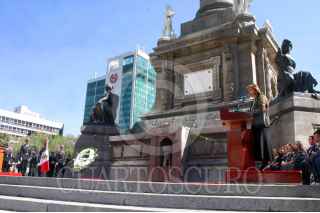 MÉXICO, D.F., 02MARZO2010.- La directora del Instituto de las Mujeres del Distrito Federal, Martha Lucía Mícher Camarena, encabezó el la columna del Angel Independencia la ceremonia conmemorativa por el 181 aniversario luctuoso de Doña Josefa Ortiz de Domínguez. FOTO: CUARTOSCURO.COM