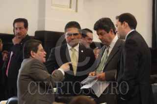 MÉXICO, D.F., 02MARZO2010.- Los senadores Silvano Auroles, Guillermo Tamborel, jorge Legorreta, Francisco Castellon conversan durante la sesion ordinaria en el Senado de la República. FOTO: SÁSHENKA GUTIÉRREZ/CUARTOSCURO.COM
