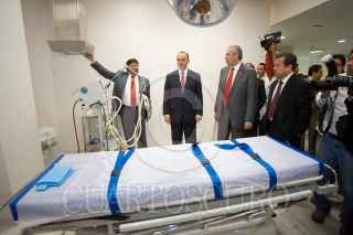 QUERÉTARO, QUERÉTARO, 02MARZO2010.- El gobernador del estado, José Calzada, inauguró la nueva área de urgencias con una superficie de 1500 metros construidos; 21 camillas, 15 de observación 2 aislados para pacientes infecto contagiosos, 2 cubiculos de reanimación con posibilidad de conversión a quirofano. Actualmente este hospital tiene asignados a los pacientes en corredores y salas de espera. FOTO: DEMIAN CHÁVEZ/CUARTOSCURO.COM