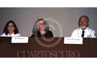 La Lic.Adriana Ortega, La Mtra.Marta Lamas y el Dr.Ruy Pérez Tamayo, durante la conferencia que ofrecieron en el Hospital General de México, Hablaron del tema del Aborto en México. FOTO: Ricardo Hernández/CUARTOSCURO.COM