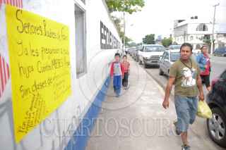 VILLAHERMOSA, TABASCO, 04MARZO2010.- Aproximadamente 40 maestros y empleados administrativos de la escuela secundaria Técnica 35, cerraron las instalaciones del plantel escolar debido a que exigen el respeto a sus derechos laborales que fueron violentados en una serie de irregularidades e incumplimientos del contrato laboral. En este paro de labores mantienen demandas y señalamientos pegados en la pared escolar y por ende al menos mil 200 escolares no reciben clases hasta que se resuelva el conflicto magisterial. FOTO: MARCO POLO GUZMÁN HERNÁNDEZ/CUARTOSCURO.COM