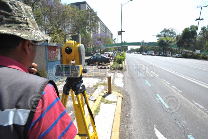 MÉXICO, D.F., 04MARZO2010.- Topógrafos y personal de obras públicas, comenzaron las mediciones para las obras que inician el día de mañana en el Eje 1 Guerrero en la colonia Tlatelolco, sobre las que circulará el Metrobús línea 3 que recorrerá todo este eje hasta la zona de Coyoacán. FOTO: LUIS CARBAYO/CUARTOSCURO.COM