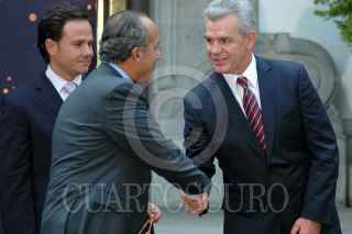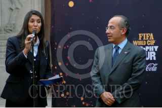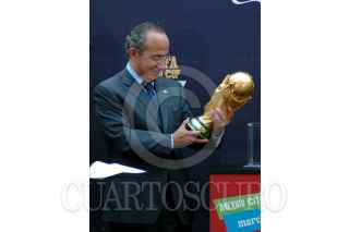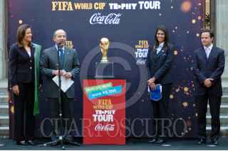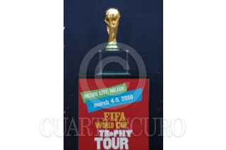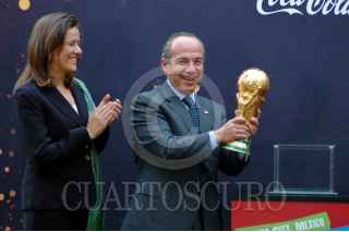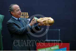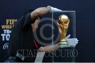 MÉXICO, D.F., 04MARZO2010.- Un guardia de seguridad coloca y limpia la vitrina en donde se encuentra el trofeo de la Copa Mundial de la FIFA que estuvo presente en la residencia oficial de Los Pinos. FOTO: RODOLFO ANGULO/CUARTOSCURO.COM