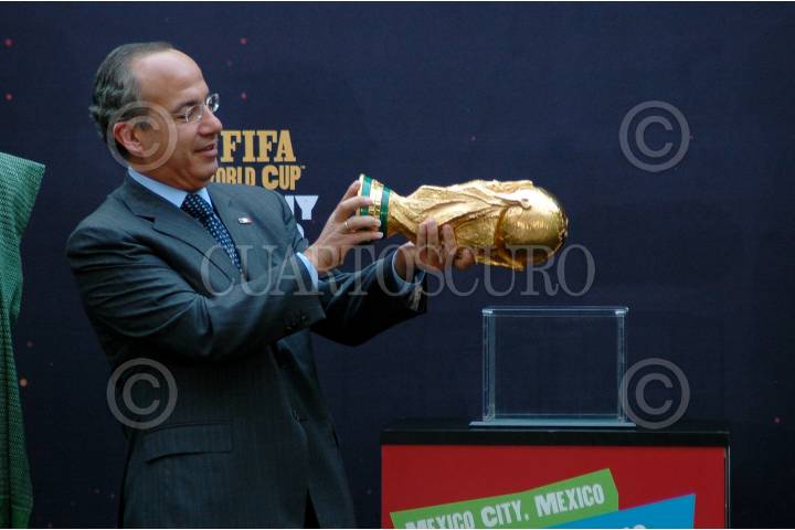 MÉXICO, D.F., 04MARZO2010.- Un guardia de seguridad coloca y limpia la vitrina en donde se encuentra el trofeo de la Copa Mundial de la FIFA que estuvo presente en la residencia oficial de Los Pinos. FOTO: RODOLFO ANGULO/CUARTOSCURO.COM
