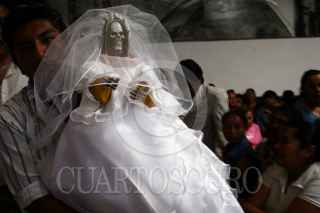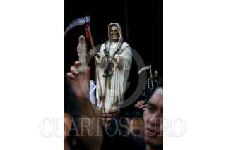PUEBLA, PUEBLA, 05MARZO2010.- Como parte de las actividades de la iglesia de la Santa Muerte se realiza una misa mensual en las calles del centro de la ciudad en donde cientos de fieles acuden con sus "Niñas" a la misa ofrecida en su honor. FOTO: FRANCO/CUARTOSCURO.COM