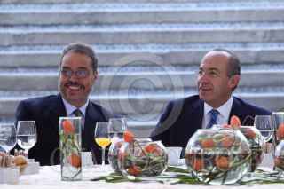 MÉXICO D.F.,05MARZO2010.- Felipe Calderon Hinojosa Presidente de México, durante el desayuno con la misión Mexicana de ayuda humanitaria que viajó a la Repíblica de Haiti el desayuno se realizó en las escalinatas de la explanada de la residencia oficial de los Pinos. FOTO: ARIEL GUTIÉRREZ/CUARTOSCURO.COM