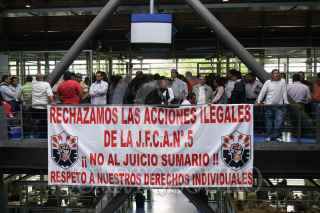 MÉXICO, D.F., 05MARZO2010.- Alrededor de 500 trabajadores y pensionados del SME acudieron a una audiencia en la JFCA, donde exigieron a la Comisión Federal de Electricidad (CFE) a asumir sus responsabilidades como patrón sustituto. FOTO: ISAAC ESQUIVEL/CUARTOSCURO.COM