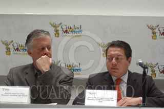 MÉXICO, D.F., 07MARZO2010.- Ramon Aguirre, Director General del SACM junto a Mario M. Delgado Carriño, Secretario de Finanzas del GDF, en conferencia de prensa dieron a conocer el nuevo mapa del Sistema Tarifario del agua de la ciudad. FOTO: IVAN MENDEZ/CUARTOSCURO.COM