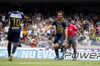 MÉXICO, D.F., 07MARZO2010.- Jugadores de los Pumas celebran su anotación de gol ante el equipo de Puebla donde el equipo de los pumas consiguió su tercera victoria en casa; anotando cuatro goles y sumado 16 puntos en la fecha 9 del Torneo Bicentenario. FOTO: SÁSHENKA GUTIÉRREZ/CUARTOSCURO.COM