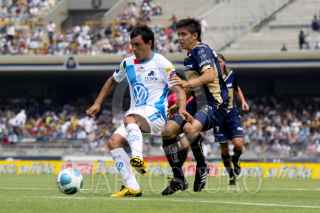 MÉXICO, D.F., 07MARZO2010.- Efraín Velarde disputa el balón durante el encuentro con Puebla en el estadio Universitario donde los Pumas de la UNAM consiguieron su tercera victoria en casa; anotando cuatro goles y sumado 16 puntos en la fecha 9 del Torneo Bicentenario. FOTO: SÁSHENKA GUTIÉRREZ/CUARTOSCURO.COM