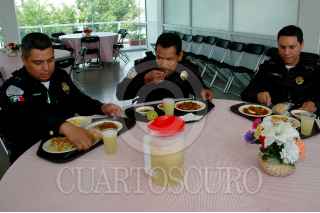 MÉXICO, D.F. 07MARZO2010.- En instalaciones de la Secretaria de Seguridad Pública del D.F., se realizo la presentación de los nuevos menús de comida que consumirán elementos de la policía como parte del Programa Integral Contra la Obesidad. FOTO: RODOLFO ANGULO/CUARTOSCURO.COM