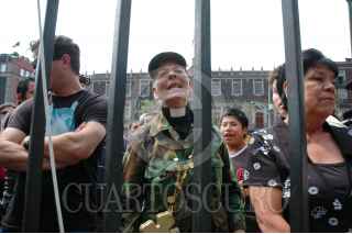 MÉXICO, D.F. 07MARZO2010.- Integrantes de la Resistencia Civil protestaron desde afuera del atrio de la Catedral Metropolitana durante el evento en donde el cardenal Norberto Rivera Carrera acudió a una celebración por el Día de la Familia. FOTO: RODOLFO ANGULO/CUARTOSCURO.COM